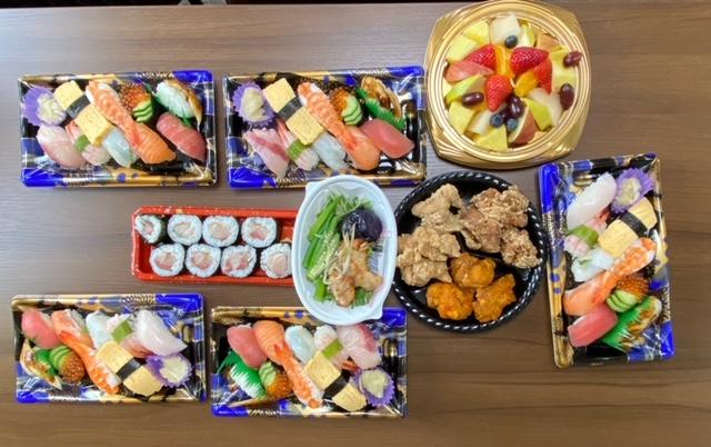 スーパーの惣菜ですが事務所に集まって昼食を食べました ψ(^-^)ψ